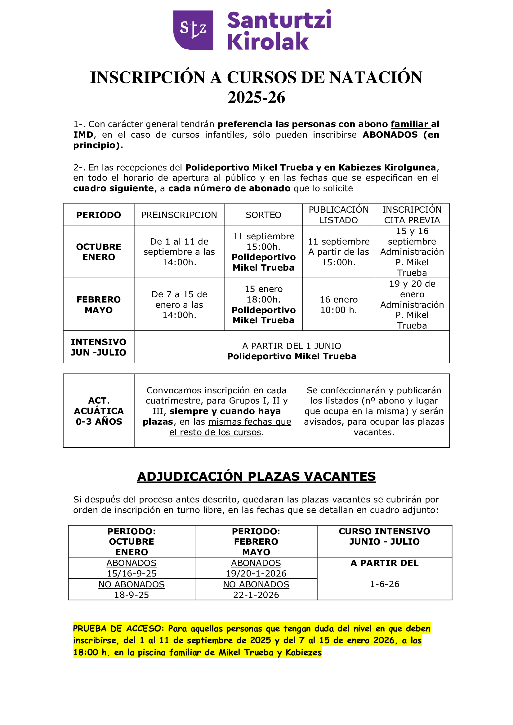Reserva de entradas piscina AVISO INSCRIPCIÓN A CURSOSNATACIÓN 2025-26 Más información AVISO Reservas Inscripciones Nuevos Abonos Novedades 13 octubre 2025 Noticia NUEVOS HORARIOS NOVIEMBRE FUNCIONAL +60 Leer más 19 septiembre 2025 Noticia TAI-CHI Leer más 11 septiembre 2025 Noticia MEJORA Y PREVENCIÓN Leer más